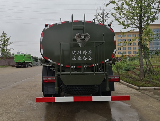 采用東風EQ2180GD5DJ型越野汽車底盤,東風一排半寬體駕駛室,4×4驅(qū)動,康明斯ISB190 50國五發(fā)動機,六檔變速箱,東風商用車橋,前驅(qū)動橋3.8噸,后橋10噸,10.00R20輪胎,軸距4500mm,電動玻璃,方向助力,斷氣剎,ABS。罐體采用優(yōu)質(zhì)碳鋼QB235板材,板材厚度4mm,罐體容積11.1立方,變速箱安裝取力器,大功率水泵可泵進泵出,后置工作平臺帶水炮射程25米,消防栓接口左右各一個,選裝駕駛室頂部安裝長條警燈帶喊話器,全車顏色軍綠,兩側(cè)噴涂白色森林消防字樣。